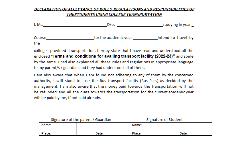 GENERAL RULES- College is providing Transport facility to its students.
